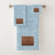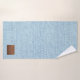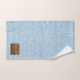 Un moderno diseño de textura de vaqueros vaqueros de denim azul claro con una etiqueta de parche de cuero falso. Personalizar el nombre y el texto y hazlo propio.