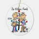 Un adorno de vacaciones de Navidades de conservas de cerámica redonda de bonito incluye a una familia con figuras de palos que incluyen a un padre, mamá, un chica pequeño, un niño y un gato familiar delante de un árbol de Navidad decorado con áreas donde se puede personalizar con el nombre de su familia y el año en curso! ¡Este adorable adorno por el recuerdo de las festividades hace un gran regalo para la joven familia para conmemorar un año especial!