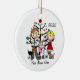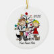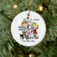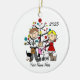 Un adorno vacacional de los Navidades de conservas de cerámica redonda de bonito incluye una pareja con figuras de palos, una hija pequeña con carruaje rosa y tres perros delante de un árbol de Navidad decorado con áreas que puedes personalizar con tu nombre familiar y el año en curso! ¡Este adorable adorno por el recuerdo de las festividades hace un gran regalo para la joven familia para conmemorar un año especial!