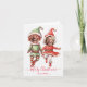 Tarjeta de vacaciones plegable con pareja de elfos de Navidad bailando y espacio para 2 fotos. Personaliza con fotos y nombres.