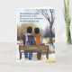 Una escena acogedora y romántica de un paisaje invernal con suave nevada y una pareja gay afroamericana en un banco disfrutando del tiempo juntos en el silencio del campo. Una tarjeta de Navidad sentimental y romántica para tu pareja de por vida.