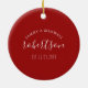 Un regalo perfecto para la decoración de pinkmas para bodas de aniversario o recién casados, este elegante adorno de navidad acrílica muestra sus nombres y fecha boda en la parte de atrás con una réplica de mi arte original del flamingo rosa. Su apellido se pone en una divertida tipografía con letras a mano sobre un sólido fondo rojo. Personalizar este ornamento redondo con tus nombres para crear un keepsake único para un regalo de boda de Navidades. Para ver más Navidades de Florida y regalos de flamencos rosas de Victoria Grigaliunas visita www.zazzle.com/dotellabelle