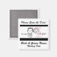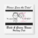 Un estilo retro: Salve el imán boda de fecha con un dibujo en línea negra de una novia y un novio y un texto que dice "¡Por favor salve la fecha!" y "¡Preguntó! ¡Dije SÍ!". Puede agregar fácilmente la fecha y los nombres de su boda a este personalizable Guardar el imán de fecha.