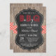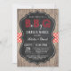 Las Parejas De BBQ Invitan A La Ducha. Invitación a Baby Q. BBBQ BaByQ Bash del patio trasero. Las Parejas Babyq Invitan A La Ducha. Invite a Baby Shower niño o Chica. Comprobación roja. Fondo De Madera Rústica.Pizarra.