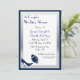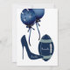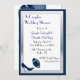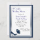 Invitación a la ducha de boda de parejas divertidas en azul marino y blanco. Gráficos de un marco de tono azul y plateado alrededor de un área de texto blanco, con un tacón azul oscuro que patea un futbol azul marino, gris y blanco. La parte trasera tiene un tacón azul alto, fútbol azul y globos azul oscuro. El texto blanco en el zapato y el fútbol tiene los nombres de la novia y el novio. Texto en blanco, negro y azul está listo para personalizar para tu gran evento. La encantadora invitación que la pareja apreciará.
