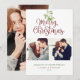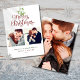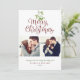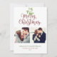 Precioso muérdago en acuarela cuelga sobre tipografía elegante de Feliz Navidad en estas elegantes tarjetas de vacaciones con foto. Personaliza el mensaje, 2 fotos, nombres y fecha en el anverso y añade otra foto en el reverso o déjalo en blanco. Diseñado por Thisisnotme©
