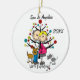 Un ornamento de cerámica lindo, de la diversión que ofrece una figura par expectante del palillo, un gato, un perro, el árbol del día de fiesta, y el texto que nos lee "están esperando!" ¡con un área usted puede añadir sus nombres o apellido y el adición el año en curso!