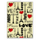 Diseño de texto de París para El día de San Valentín con formas de corazón rojo, Torre Eiffel y lámparas de calle con fondo amarillo