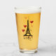 Este bonito diseño de la Torre Eiffel presenta la torre Eiffel en un edificio con una palabra gótica roja y gris "París" y globos flotantes de corazón rojo.