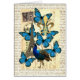 moda de bonito elegante collage digital romántico femenino de un pájaro pavo real y mariposas azules y torre eiffel , París, Francia sobre un fondo vintage de papel postal y sello francés con flores de oro de lys. copyright Oconnart