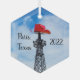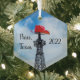 Único adorno de vidrio con la Torre Eiffel de París, Texas con el gorra de vaquero rojo.