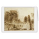 El parque romano con fuente de Jean-Honore Fragonard, 1774, es un pequeño pero monumental pincel y un dibujo de tinta marrón de un parque romano de la época renacentista, sobrepoblado por árboles y arbustos, viñas y arbustos que crecen sobre las enormes estructuras con columnas en la cima de una colina. Las pequeñas figuras de la fuente marcan la escala en medio de las obras de cepillado, detalladas y animadas. Jean-Honoré Fragonard (1732-1806) fue un pintor rococó del Antiguo Régime francés, cuyos trabajos se distinguían por la facilidad de uso y la exuberancia. Originalmente un alumno de Chardin, Fragonard produjo una gran cantidad de obras hasta que la creciente moda del neoclasicismo y la Revolución Francesa lo obligaron a huir a la oscuridad. La reputación de Fragonard se reavivó a finales del siglo XIX, cuando su sentido del color, su relajada temática hedonista y su laberinto de pintura inspiraron a nuevas generaciones de impresionistas como Renoir.