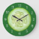 Una rebanada fresca de pepino en un reloj de decoración de pared de diseño gráfico con el cierre de una vista abierta en rodajas. Este delicioso reloj de pared de la cocina le traerá un toque de color verde y una rebanada de comida a cualquier cocina de la habitación para decorar su hogar. Utilícelo como acento doméstico o pieza decorativa para añadir un pequeño color primario a tu cocina, sala de estar o habitación para niños.