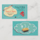 Tarjeta de visita inspirada retra de la panadería y del café con pasta y el rodillo rodados. Capítulo por el cordón del mezclador rojo.