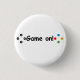 ¡Partida! Botón Este botón tiene el logotipo Juego activado! que incluye los botones de un controlador a cada lado del texto. Esta imagen está disponible en redondo y cuadrado y en varios tamaños. El logo es un diseño digital.