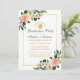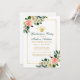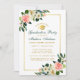 Tarjeta de invitación para la fiesta de graduación floral y de oro de color rosa y tropical - texto verde y dorado