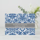 Tarjeta personalizado de invitación de graduación con elegante y sofisticado diseño azul marino oscuro, gris y blanco clásico de damasco floral vintage. Personalizar esta tarjeta de invitación de grado añadiendo el año de su graduación y los detalles de su fiesta de graduación.