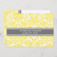 Tarjeta personalizado de invitación de la fiesta de graduación con elegante y sofisticado color limón amarillo, gris y blanco clásico estilo vintage de damasco floral. Personalizar esta tarjeta de invitación de grado añadiendo el año de su graduación y los detalles de su fiesta de graduación.