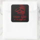 El cráneo de un demonio rojo espeluznante, cara sobre fondo negro, para una "noche de espanto" pegatina personalizada para regalar y regalar bolsos. Para tu fiesta de Halloween más creíble.