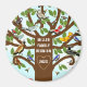 Recuerdos de reencuentro familiar con un árbol lleno de pájaros divertidos. Editar texto para agregar el año y el nombre de la familia.