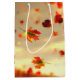 En el fondo de un solitario arce en la ladera de una colina, brillantes hojas naranjas y amarillas de otoño flotan en la brisa.