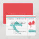 Tarjeta de respuesta RSVP de pase de abordar para la boda con la invitación de boda Pase de Abordar Croacia. Los colores son Coral Oscuro y Verde Acuático Claro. Mapa de Croacia y dos palmeras en el diseño. Si el esquema de color no es lo que desea, por favor envíe un correo electrónico a paula@labellarue.com ANTES de realizar su pedido para que se pueda crear un nuevo diseño para usted. Por favor, asegúrese de revisar su diseño antes de enviar su pedido.