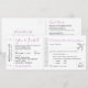 Invitación de boda de destino en la playa todo en uno de lavanda morado plateado y lila en forma de tarjeta de embarque de pasaje aéreo, con una sección para que los invitados CORTEN y envíen por correo como una tarjeta postal adjunta de respuesta. Un logotipo de corazón de avión plateado acentúa el estilo de boleto retro simple y auténtico.