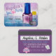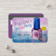 Pase VIP Morado|Blue|Invitaciones de fiesta de Spa con tarjeta de crédito Dilo con brillo! Las invitaciones a las fiestas balneario estilo tarjeta de crédito son únicas y adorables. Lavanda/morado a azul en bloque con chispas blancas centradas, flor spa rosa y gran botella de esmalte de uñas. Todos los colores de texto se pueden cambiar si el color de imagen del bloque de color de fondo deseado NO se puede cambiar.