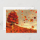 En el fondo de un solitario arce en la ladera de una colina, brillantes hojas naranjas y amarillas de otoño flotan en la brisa.