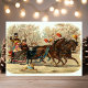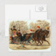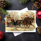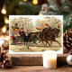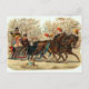 Hermosa tarjeta postal vintage de paseo en trineo de Navidad. Este diseño cuenta con dos hermosos caballos y una familia en su trineo corriendo por la nieve con su perro.