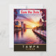 Invitación de boda de Tampa para guardar la fecha, tarjeta postal de viaje. Puesta de sol sobre el paseo marítimo de la ciudad.