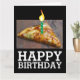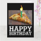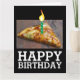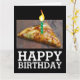 PIZZA SLICE CON TARJETA DE VELAS. "FELIZ CUMPLEAÑOS. ¡CON TODAS LAS COSAS!"