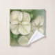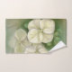 Este conjunto de toallas está decorado con obras de arte en tonos pastel suaves que representan tres delicados y cremosos flores de hortensias de hojas de roble blancas con brotes acentuados en verde.