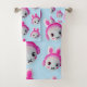 Designed with adorable pastel bunny faces in soft pink and blue tones, this towel set adds a playful, happy vibe to any space.