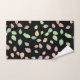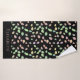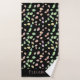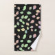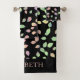 Siluetas de hojas caídas en tonos pastel de color verde y rosa con acentos amarillo, melocotón, azul y malva. Hojas multicolores en un patrón de caída aleatoria. Envuelto en negro sólido. Personalice su nombre en letra rosa en mayúsculas.