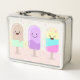 Un trío adorable de helados felices sobre fondo de confeti pastel. Opción para personalizar.
