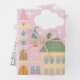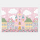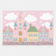 Este es un conjunto de Papel de envolvimiento para niños de paisajes urbanos. El diseño paisajístico de la ciudad fue creado con arte generativo. El arte presenta un bonito paisaje urbano pastel con un castillo rosa, una casa azul, un edificio amarillo y un fondo rosado. Hay nubes blancas en el cielo, chispas y flores rosas y azules. Hay destellos a lo largo de la imagen. El acabado es semibrillante. Puede cambiar la imagen haciendo clic en el vínculo Personalizar. Las hojas de papel envolvente tienen guías de cuadrícula para ayudarle a doblar el papel de envoltura.