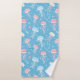 Upgrade your bathroom aesthetic with a luxurious touch by adding this stunning bathroom towel set adorned with a seamless pastel blue and pink jellyfish design.