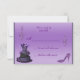 Glamorosas tarjetas de respuesta planas RSVP, de color morado y negro, para la fiesta de cumpleaños de las mujeres, la fiesta de soltera, las duchas de novias, eventos corporativos, bailes de máscaras, etc con diamantes de imitación con impresión violeta joyas tacones altos zapatos de tacón de las mujeres con chispas, una hermosa torta de diva de niñas moradas y negras con moda máscaras de pelotas, linda mariposa, estrellas remolinos, floridos y rosas y una nota musical purpurina de diamantes de imitación plateados impresa en bonito. Estas elegantes invitaciones funky están decoradas a ambos lados. Moderno, divertido, fresco y elegante, invita al glamour moderno. Todo el texto es totalmente personalizable, por lo que estas invitaciones se pueden usar para cualquier evento. NOTA: Todos los productos de Zazzle tienen imágenes impresas planas - no joyas reales, purpurinas o destellos. Si necesitas ayuda para personalizar tu producto, por favor contacta conmigo a través de mi tienda y estaré encantado de ayudarte.