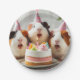 Un plato de fiesta con una dulce foto de conejillos de indias celebrando un cumpleaños con pasteles y gorras fiestas, también se pueden encontrar tarjetas coincidentes en la tienda que se pueden usar para invitaciones o tarjetas de agradecimiento,