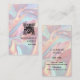 Estas elegantes tarjetas de visita cuentan con un neón holográfico colorido, neón colorido de moda sobre un arco iris. Su nombre aparece en la tipografía de escritura a mano de moda. También hay espacio para incluir la información de sus medios sociales en la parte trasera.