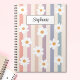 Pastel Personalizado,Este adorable cuaderno presenta margaritas blancas en un fondo a rayas en tonos pastel.