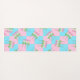 Se ha añadido al diseño "Dango Away" un fondo de cuadros azules y rosas que recuerda a los pétalos de Sakura flotando suavemente a través de un cielo primaveral fresco. La adición de una ligera sombra ayuda al dango a reaparecer.