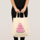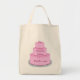 La pintura de una torta rosada de tres niveles decorada con corazones rosa claro y un guarnecido rosado oscuro, colocada sobre una bandeja de plata, con marcadores de posición para el texto personalizado, se imprime en bolsas de personalizado. El texto es fácil de personalizar y se coordina con el pastel. Gracias por su patrocinio de CherylsArt en Zazzle.