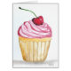 Pastel con cereza encima, comida fiesta, celebración, cumpleaños, pasteles, postres, quequitos rosados con hielo, comida para niños, bizcochos para bebés, papel de envoltura de quequitos, regalos de quequitos, regalos de pastelitos, pastelitos, pinturas acuarelas, estampados de quequitos. Guay,