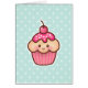 Un quequito rosado al estilo kawaii con fondo de patrón polka azul menta.