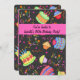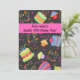 ¡Celebremos un cumpleaños número 80! Esta invitación es genial para una divertida fiesta de cumpleaños número 80 u otro año. Todas las palabras son fáciles de personalizar para hacerlo propio. Un lado de la invitación tiene un diseño de colorido arte original de pasteles de cumpleaños y quequitos al azar, la palabra arte "feliz cumpleaños", globos, velas, serpentines y puntos sobre un fondo negro. Una tira rosa fucsia tiene las palabras personalizable "Estás invitado a", un nombre personalizado y "fiesta de cumpleaños número 80". El otro lado tiene todos los campos para su fiesta. El borde es el mismo arte con un área negra delineada en rosa caliente para toda la información para personalizar tu propia invitación. Fácil de personalizar para otros eventos.
