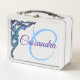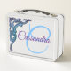 En tonos femeninos azules y violetas, un bonito diseño victoriano giratorio de steampunk ornamentado. Personaliza con tu nombre y inicial o dar como regalo.