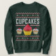 Pasteles de Navidades feos suéter. Si te fascina el pastel, este es el suéter de Navidades feos de Cupcakes para ti.