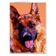 Pintura original por Keleen de un pastor alemán que parece hermoso en colores brillantes en las camisetas, impresiones, posters, tarjetas y franqueo de felicitación, tazas, delantales, totes, botones, calendarios, casquillos, llaveros, imanes, pegatinas, lazos y más.